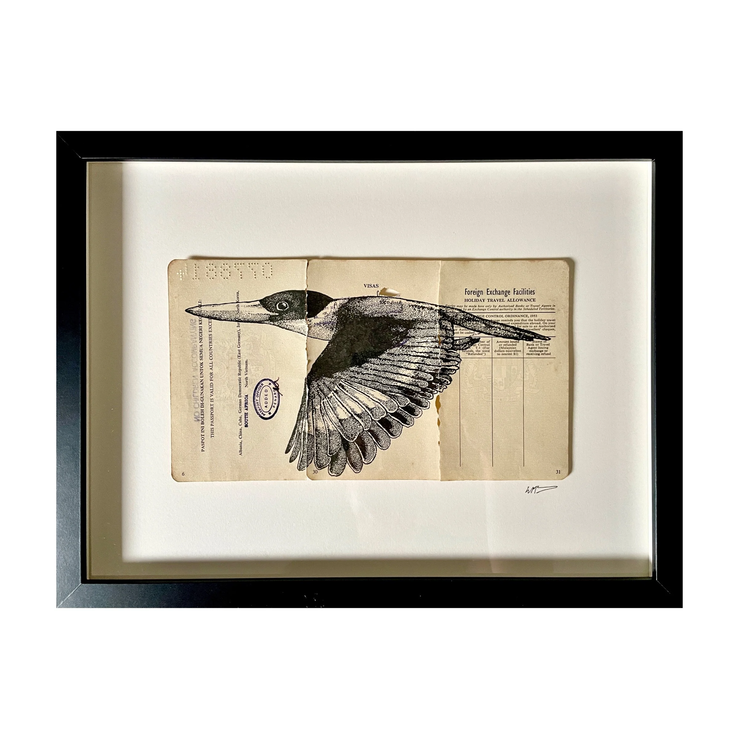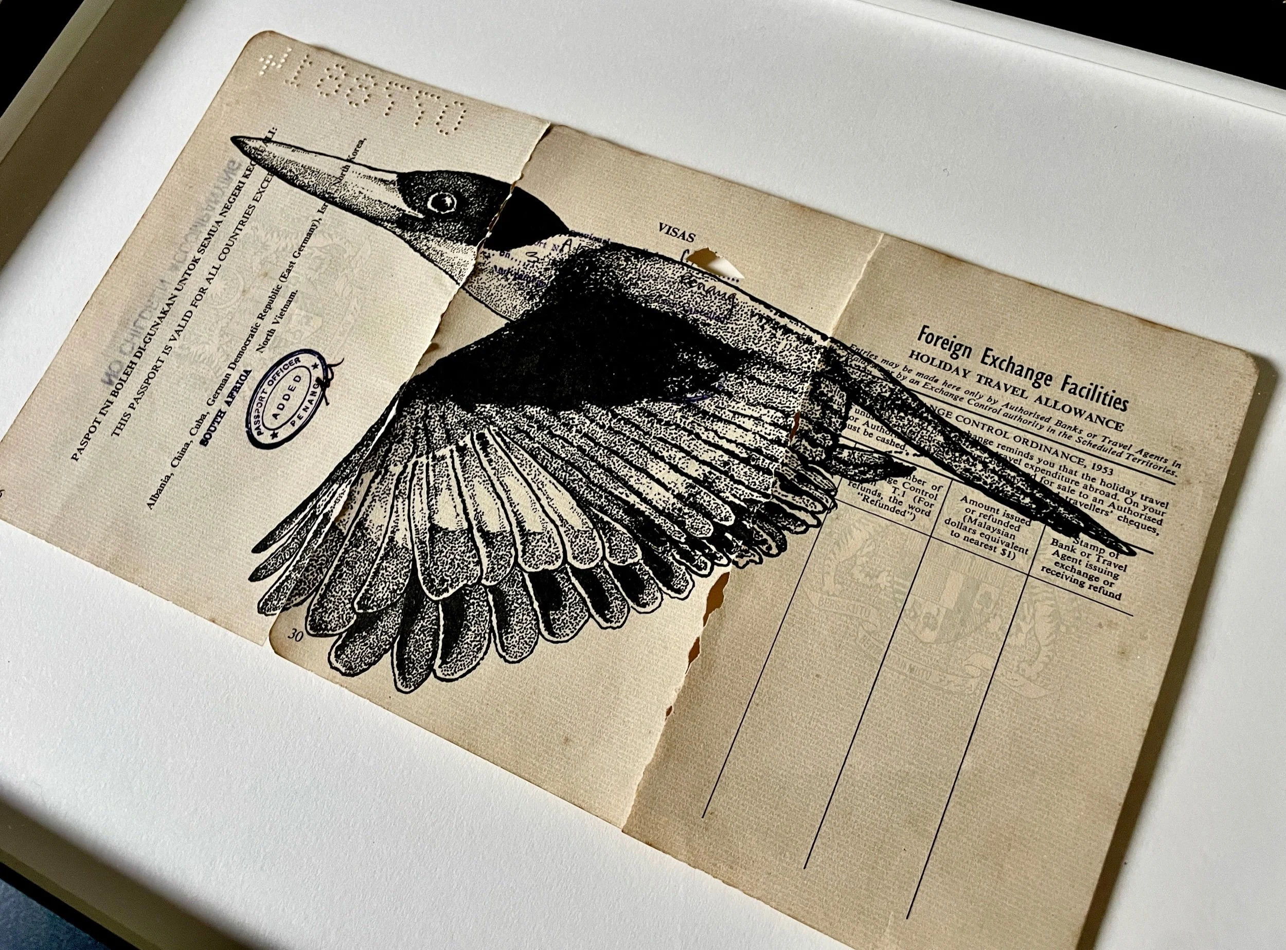 Original pen illustration on Passport pages from Mdm. Chin Chooi Siow. Sourced in George Town, Malaysia.
