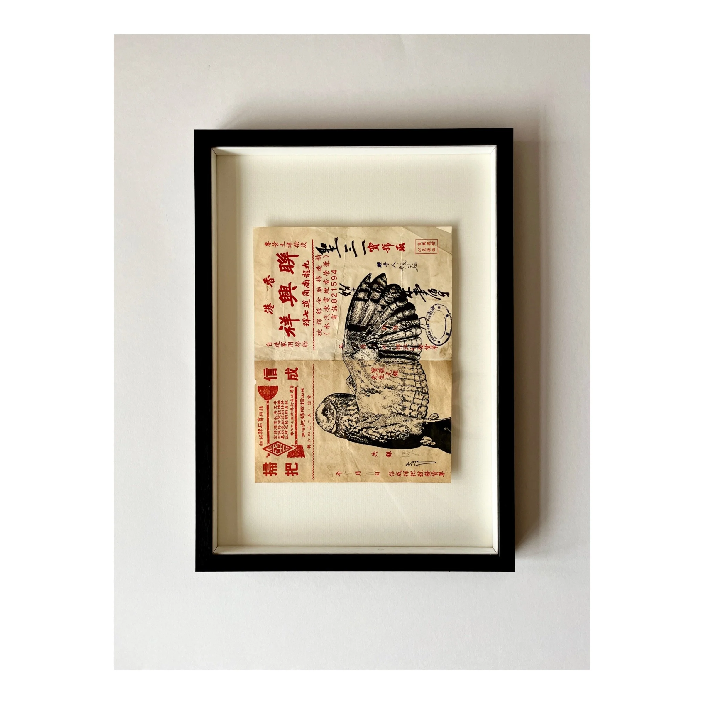 Pen drawing on various antique documents sourced in Hong Kong.